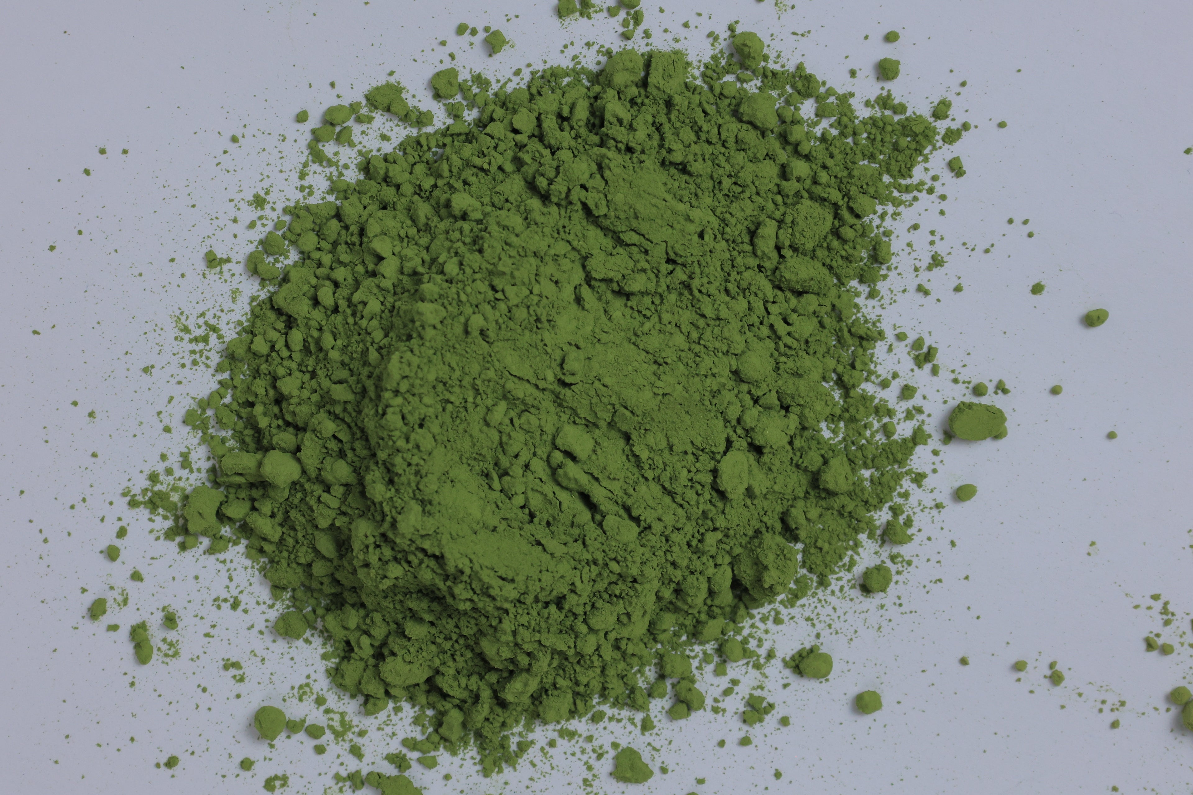 Le matcha est fabriqué à partir defeuilles de thé vertcultivées à l’ombre pour enrichir leur saveur et leurs nutriments. Après la récolte, elles sont séchées, débarrassées de leurs tiges et nervures, puis finement broyées à la meule de pierre pour obtenir une poudreverte intense.